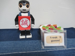 ひとり暮らしが増える超高齢社会に向けて、ロボットとどれくらい会話、コミュニケーションができるか、実験しています(%ニコ男%)(%ハート%)(%ニコ女%)