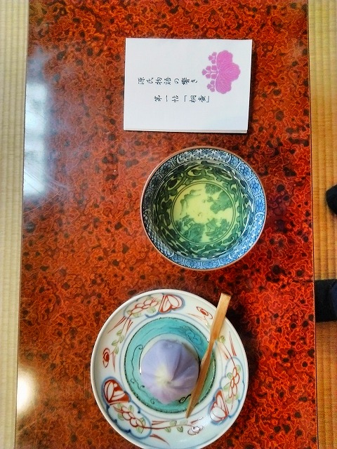 毎月第1月曜日2時からの源氏物語は、よく知られている「いずれの御時にか・・・・」で始まるお話の3回目で垂水の「杵屋」さん創作和菓子が楽しみです。毎帖のイメージの和菓子は当日まで解りません。今日は薄紫色の桐の花でした。