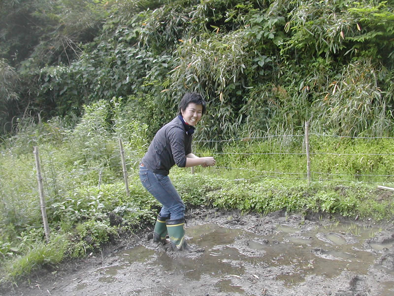 ドロに足を取られ、尻餅を着きそうになりながら数人で植えました、