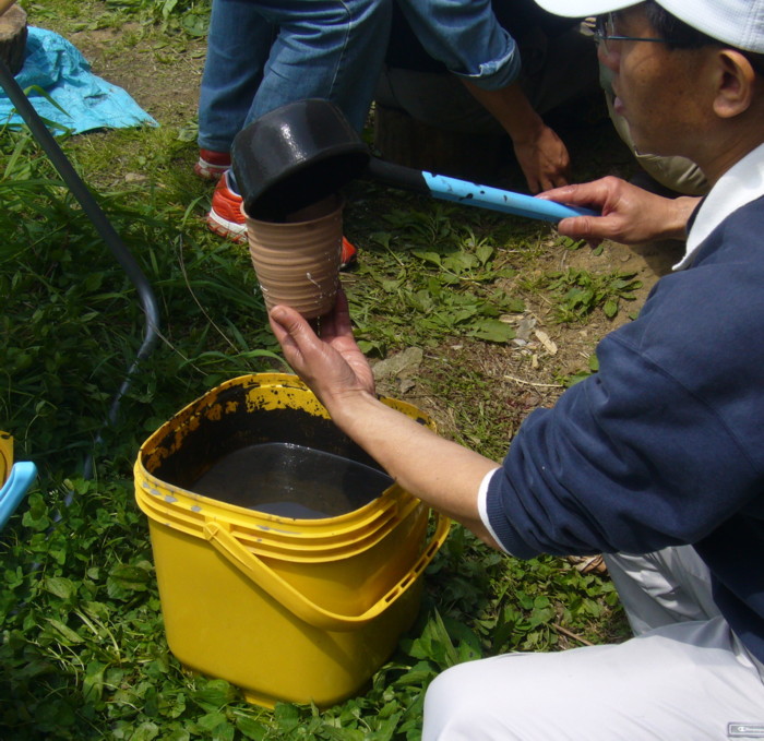 2トントラックで2回、人海戦術で運び込み、積み上げました。