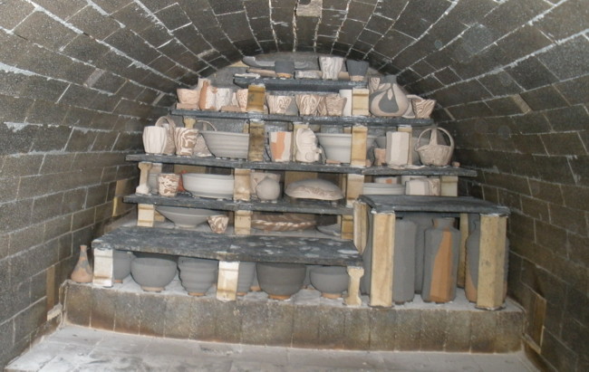 ここは穴窯構造で、灰が良くかかり素晴らしい景色のついた作品に焼きあがります。