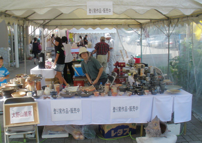 我々はお野菜ではなく、大野山麓窯で焼成した作品を展示販売しました