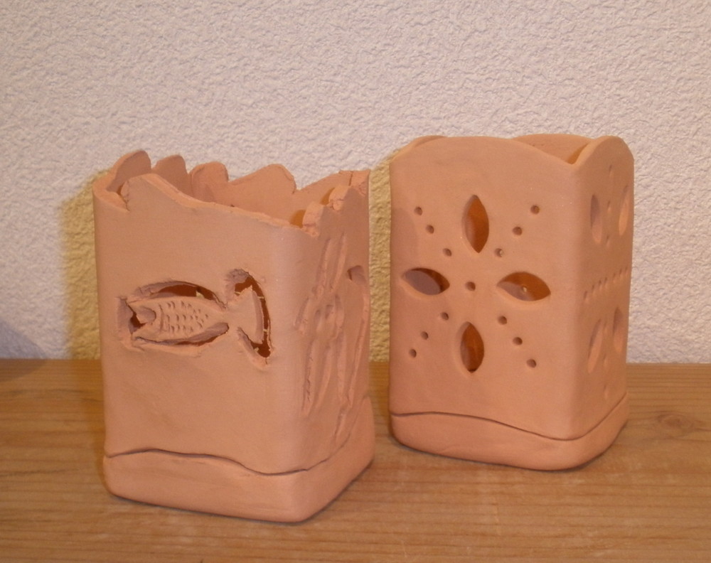 陶芸体験教室では、牛乳パックを使って明かりを作ります。