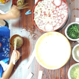 二つの班に分かれて、うどん作り始めました。