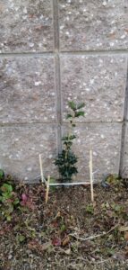 【写真】我が家のフェンス前で、スクスク成長中のヒイラギちゃん。鳥(のフン)が運んで来たんでしょうね。