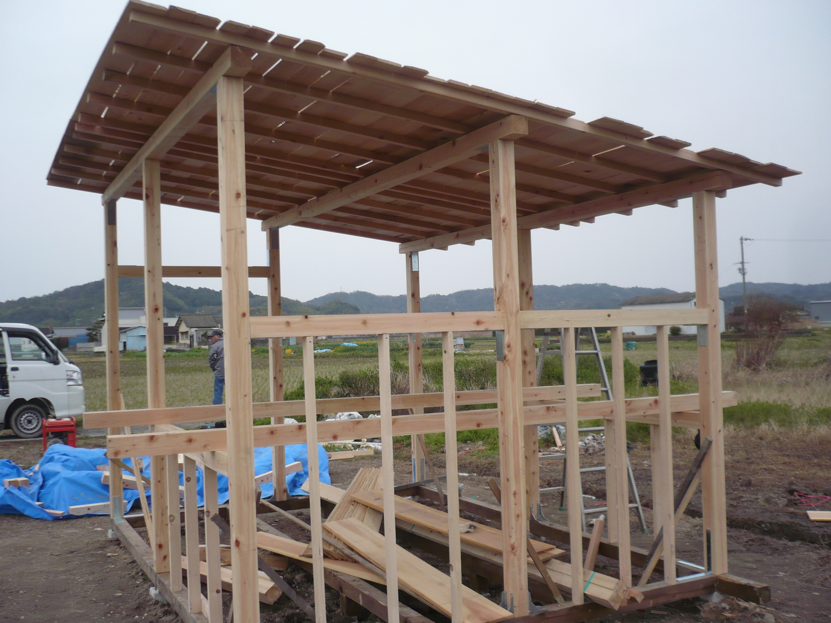 うまく出来上がれば我がNPOで、小屋作り等の簡単な大工仕事を引き受ける事業を起したいと考えています。(甘いかな)(%ニコ男%)(%ニコ女%)(%晴れ%)