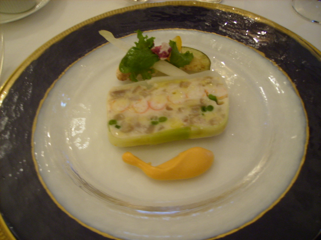 ■魚介のムースとコラーゲン小海老のテリーヌ仕立て