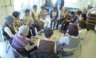 11月朝の冷え込みの厳しい日でしたが、12人の参加者を迎えて、地区の会館で認知症予防のスリーA体験教室を行いました。この地区では、初めての教室でした。