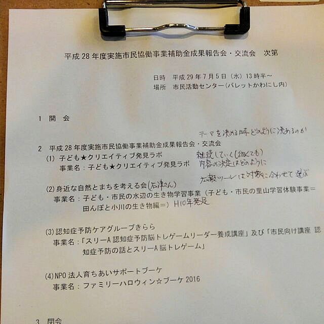 昨年28年度に川西市に協働事業として認められた4事業団体の成果報告で、私どものグループ以外は子どもを中心にした活動で、盛大にいろいろな催しものをしていて、楽しい内容でした。