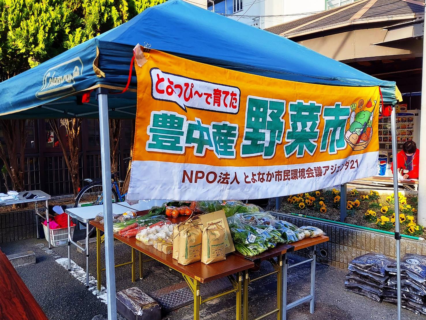 23日(木)、毎月恒例の市内城山町さわ病院での「野菜市」を開設しました。資源循環堆肥「とよっぴー」で育てた旬の朝採り冬野菜を中心に豊中産米や筍(湯がいた筍)などが出品です。