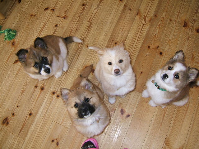 これでもか!これでもか!のフード作戦で数日後ようやく写真のように「おいで〜♪」の声で全員集合。(左からディーン、ダンテ、デニス、ディオール)