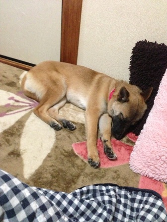 夜のご飯の時間まで、ぐーっすり寝ていました。