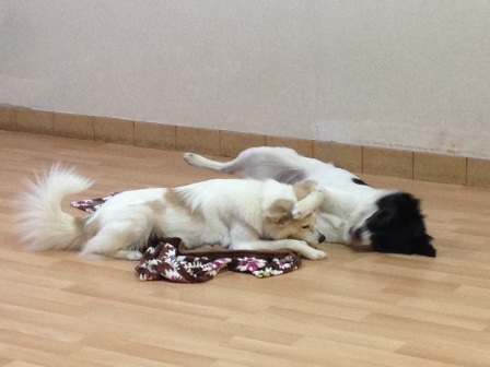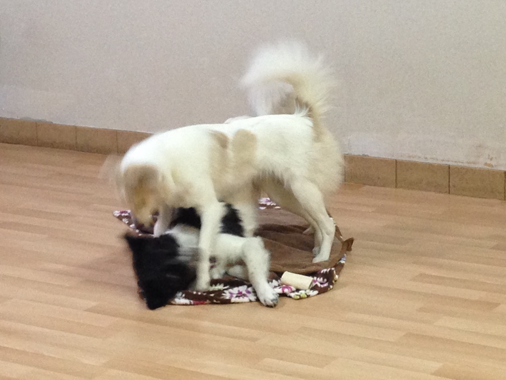 いつのまにか、おもちゃそっちのけで2頭仲良く遊んでいました(笑)