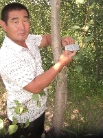 トウモロ農地を守るための幅20mのベルトの木は5年目で5mに育ちました、今後は成長速度を速めて、10数年で15mの成木になります。これからは、間伐ができて、葉を混合飼料に、枝を材料に、燃料に、と使え、役立ちます。ここまで5年の辛抱、費用負担が大変なのです。なお、この方はウリジ氏の義兄、お尻の青い日本人の元が実感できますね。