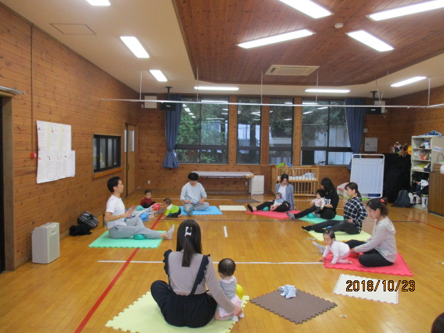 おやこヨガでした(%黄点%)(%青点%)(%赤点%)