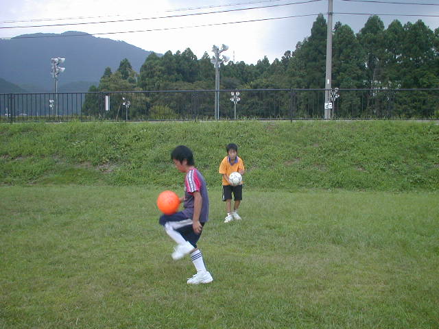 その後に、リフティングをしました。最初はワンバウンドさせながらマーカーを拾うもので、そこではスクール記録の7枚を更新した絢太くんでした(%笑う男%)(%星%) 8枚連続で拾う事に成功し、一緒にやっているみんなも驚いていました(%ショック男%) それが終わってから、いろんな部分でリフティングを30秒間ずつやって、最後には3分間の測定をしました。そこでがんばって記録を更新したのは新己(につき)くんでした(%笑う男%) 年間目標の50回を更新し、51回となったので次の目標は100回に設定し、またこれからのがんばりを誓いました(%笑う男%)(%笑う男%)