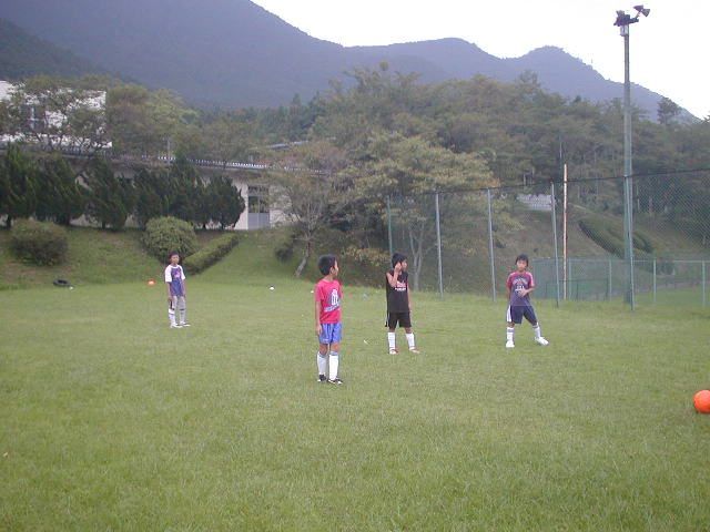 最後は9人だったので5対4のゲームをしました。今日も場所い〜〜〜っぱいにコートを作ったのでこの人数ではしんどかったと思います(笑) でも、これを『自業自得』と言います(%ニヤ男%) 自由にコートを作っていいよ、と言えばとにかく開放感に身を任せて大きく作ってしまうのも、子供の習性ですかね(%笑う男%)