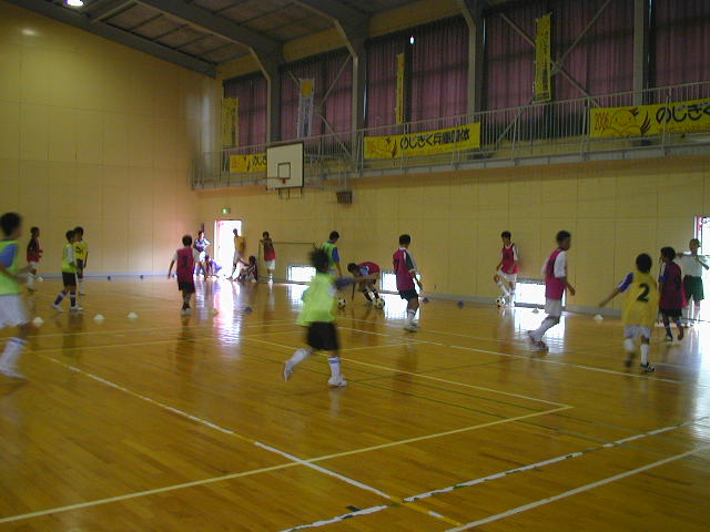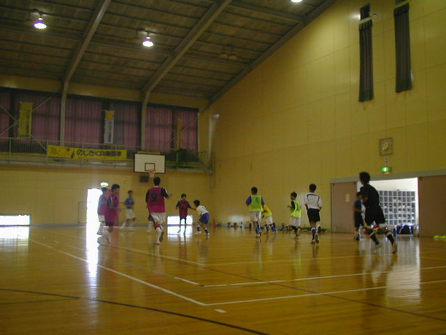 そのまま、フォローの意識を持って3色ゼッケンでのパス回しをしました。とにかく頭の対応が出来ていない子はさっきのゲームでも、流れに入れずにいた。。。流れに入れないとは、このパス回しでも同じだけど『ほとんどボールを触れない子』です(%痛い男%) 先の考えがないとみんながどんどん触ってしまい、自分は入れなくなる。ここで気付いてほしいのは、多く触る子と自分との違いは何か?を考える事。そして、声のタイミングとかフォローの位置を考える事が重要になる。パスとは、出し手よりも受け手がしっかりとした意識でないと成立しないものです。受け手の意識を今は上げたいなと思います(%笑う男%)