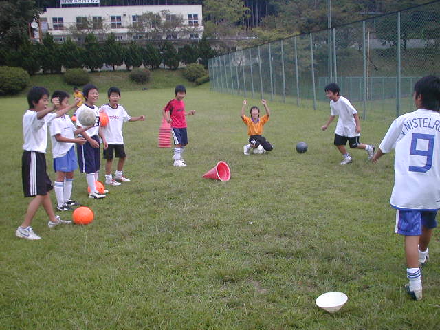 今日は天気がころころ変わる一日でしたが、スクールをする頃には晴れ間も見えたりしてどうにか出来て良かったです(%くもり%) 今日は新学期になって最初のスクールだったのでどうしても学校が終わってからの集合なので時間にも夏休みのような余裕がなく、4時半からちょうど始めるのは難しくなってきました。それでも、元気に9人全員が集合してくれた事をうれしく思います(%笑う男%)