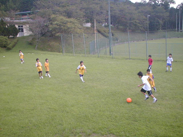 最後はミニゲームをしました。このミニゲームはいつも3,4年生のゴールは一回で2点というルールにしていますが、今日はそのルールがフルに活用された状態で、点の取り合いとなりました。取っては取られのシーソーゲームでした(%笑う男%) そして、いつも以上に全員が『勝ち』にこだわった試合だったのが良かったと思う。楽しいとは勝つ事でも得られるものです。負けても楽しく、は大事ですがやはりどんな小さな勝負でも『勝つ』と『負ける』では人間喜びも違ってくると思う。今日は結局7対5という大きな得点が入るゲームでした!今日は、大輝くんが攻守にわたって大活躍をしてチームを盛り上げました!!!!こうした日替わりMVPが出る事も大切です(%笑う男%) 激しいゲームになったけどケガなく全員が笑顔で終われて良かったです!!来週もがんばろう!!