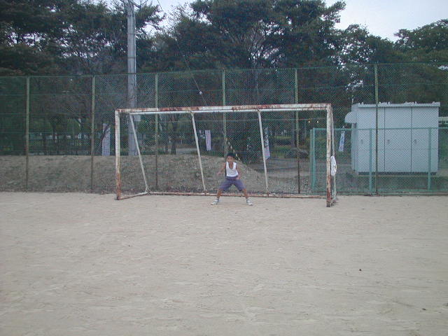 タンクトップになってキーパーをしてくれました(%笑う男%) どこかのファルコのキーパーと同じような匂いがしますねぇ〜(○西 ○太くん)(笑)