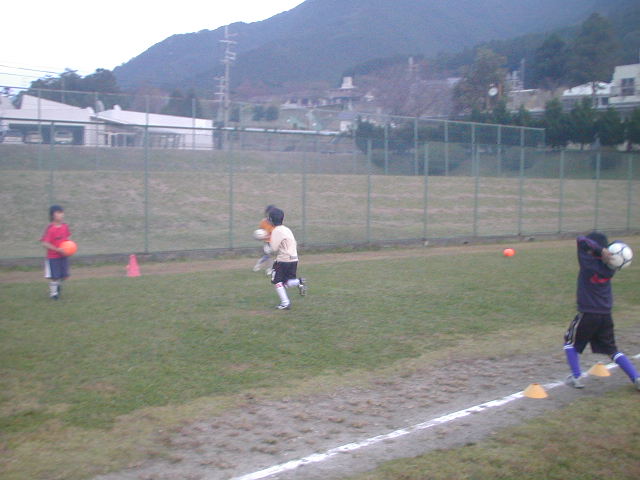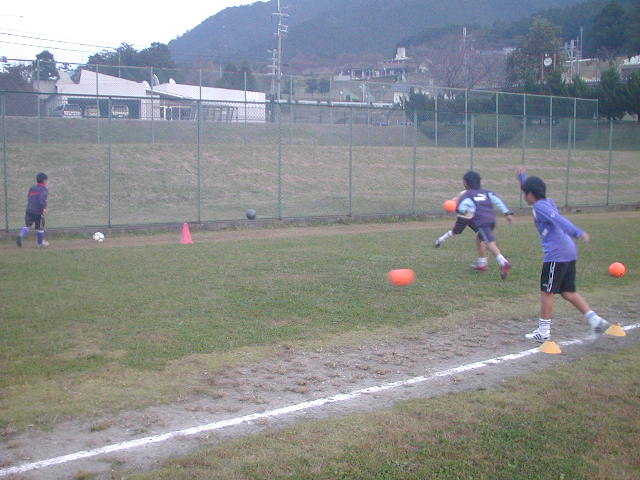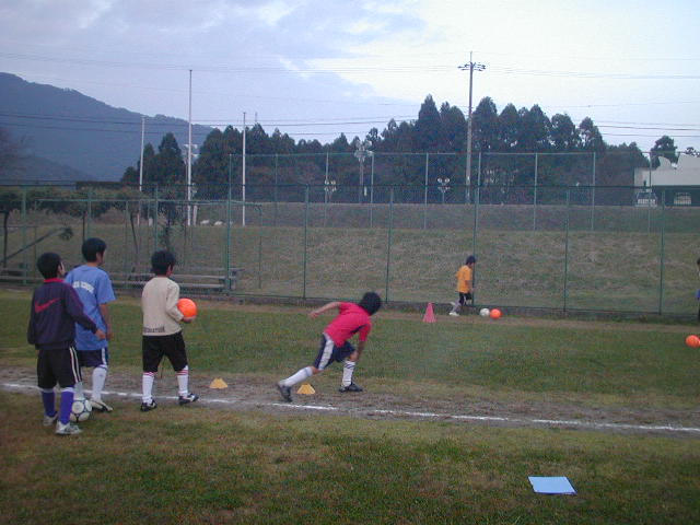 今日は写真はここまでしか撮れずに、それからの時間は暗くて見えなかったので掲載は出来ませんが、今日はまたボウリングを一回して、みんな(8人)で一回ずつ蹴って、何本倒すかをやりました。ここでは、前回やった時とは比べ物にならなくて、全員が効率よく倒していき、最後の絢太くんがきっちりと倒し、見事にストライクを達成しました(%笑う男%) 今日の最初からのテーマが『みんなで協力する』事が狙いだったので、みんなでがんばりみんなで成果を喜ぶ。このうれしさもスポーツをする上でのとても大切な要素だと思います。勝つ事だけでなく、みんなで励ましあったりしながらがんばる事で意欲は増します。そうした協力の中で多くを学ばせてやりたいと思います(%笑う男%)