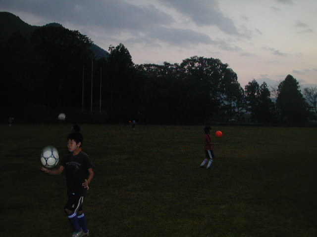 もう30分もしたらご覧のように薄暗くなってきます・・・日が暮れるのも早くなってきました(%痛い男%) そうです。考えてみればもう11月になろうとしているのですからね(%笑う男%) 本当に月日が経つのは早いものです(%笑う男%) 月日の変化と一緒に早いのが子供の成長です!いつもリフティングは欠かさずスクールではやりますが、その日に目標を持ってがんばる子が増えたので記録も充実してきました(%笑う男%) 今日も、失敗をたくさんしながらもがんばって一回でも多くしようと努力している子ばかりだったので、意味のある時間になったと思います(%笑う男%)