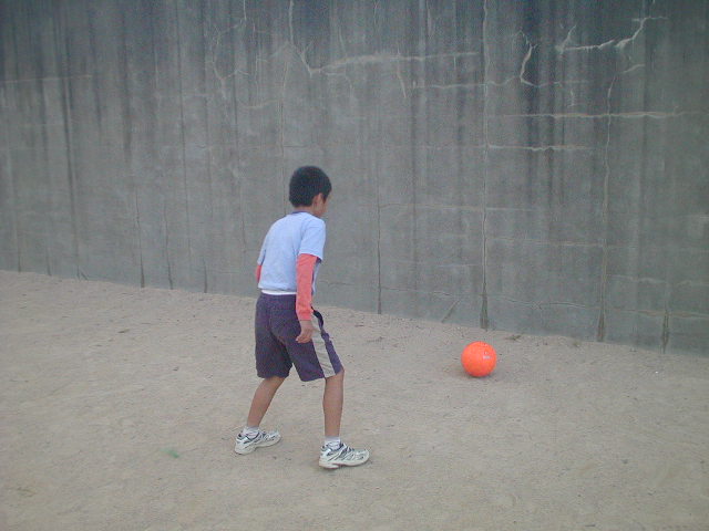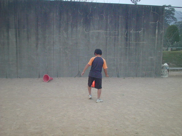今日の練習は11月に入ったのもあって、振り返ってみると半年が過ぎたのです。そこで半年がんばってきた成果を自分で確かめよう!というテーマでやりました。最初は拓斗くんが少し来るのが遅かったので、早く来た裕幸くんに、課題を与えました。そして壁に向かって苦手な左足での壁当てを繰り返すようにさせました。がんばって挑戦してくれたのでこちらが与えたノルマはしっかりと達成していました(%笑う男%)