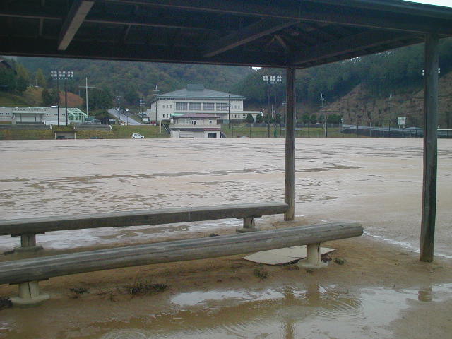 今日はあいにくの雨の天気になったので、コーチは作陽高校の試合を見に行こうと思っていたのですが、雨での試合観戦は老体に厳しいので辞めました(笑) と言うか雨になると・・・あ!!道具洗わないと!!って話です(%ショック男%) グランドは乾く見込みもないのがこの写真です(%ショボ男%) なので体育館の予約をして、道具を洗いました。今日はその道具を洗ったコーチの気持ちを書こうと思います・・・