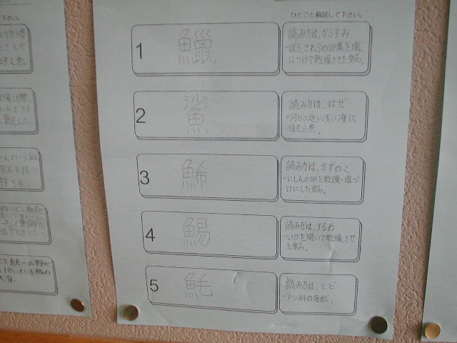 昔に聞いた魚の付く漢字に詳しい貴規くんの得意分野だけあって、その1位なんてコーチは見た事ない漢字でした(%ショック男%) 『からすみ』なんてみんな知ってますか??ちなみに全部丁寧に魚の説明も書いてくれていました(笑)