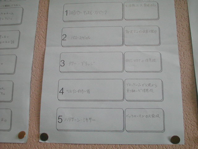 一時期二人で盛り上がった『キン肉マンに出てくる技のベスト5』でした(笑) 分かる人にしか分からない究極のベスト5でした(笑) キン肉マンはコーチが子供の時に見ていたアニメなので、みんながうまれる前にしていたものですが、アニメが以外と好きな梅田くんのこのキャラが最高ですね!!!