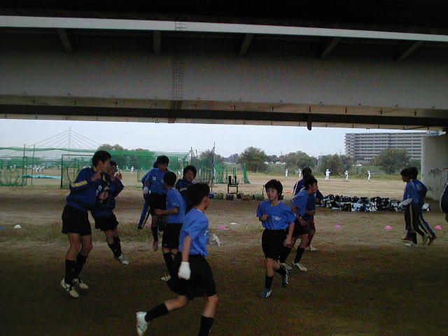 雨が降っていたので、橋の下に荷物を置いてアップをしました。下は結構荒れていてボコボコでしたが、どうせやるなら悪い環境でやっておこう!!とあえて悪い場所を選んでアップをしました(%ニヤ男%) まずは、体を動かしたりぶつけ合いをして気持ちと体を作ります。変に気負わせる事なく。を自分の中ではだいぶ意識をしてやりました。子供したい事、やろうとする事を認めてやりたいのもあって、今日はアップの途中に全員集めて、ミーティングを簡単にしました。