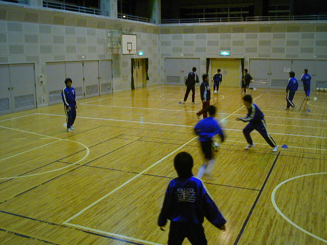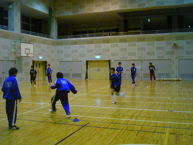 今日の練習は中区の南小学校の体育館で行いました。テーマは『攻撃』です。攻撃に必要な技術って何だろうか?そういう単純な質問を自分に問いかけながら出した答えを今日の練習ではやりました。最初は冷えた時期の体をしっかりと温める為の鬼ごっこをしました。特にここでの大きなルールはなく、単純にタッチされたら交替のルールでやりました。ただし、4人の鬼のうち、2,3年生が鬼で終わったら連帯責任でジャンプ10回にしました(%ニヤ男%) まずはこれを3回やって体をほぐしてからは次にラグビーをしました。攻めるのは5人で守るのは3人。ラグビールールで攻めるようにしました。それは横パスか後ろにしかパスをしてはいけないルールです。こうするといろんな攻めの欠点が見えました(%ニヤ男%) それが狙いでもあったので良かったのですが、子供は混乱したかもしれません。攻める方法が見つからないから・・・・そんな行き詰った発想を変えたのが『3年生の発想』でした!佳吾くん、川口くん、梅田くんと遅れて雄太くんの参加でしたが、この3年生の発想は1,2年生へのいいヒントを与えてくれました(%笑う男%)