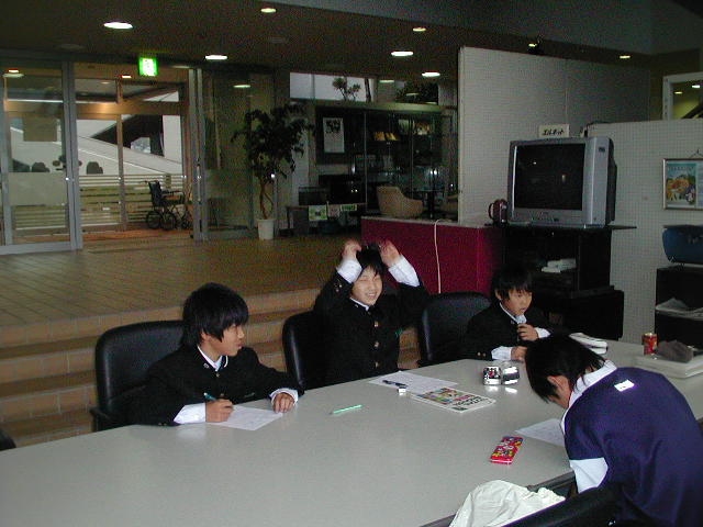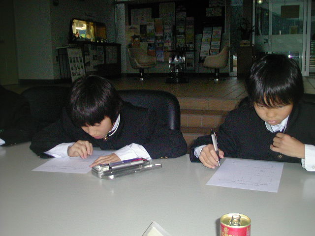 昨日は中区での勉強会を行いました。きちんとコーチとの約束の時間に登場したのは3人の生徒でした(%笑う男%) もちろん安全タスキもヘルメットもしてです(%笑う男%) でも、一人足りない・・・竹内くんがいません(%痛い男%) 今日は午前に医者に行ったらしく学校も休んでいたのですが、家に電話をしたら帰ってきていたので来るように言うと、すぐに来てくれたので4人揃っての勉強会をしました(%笑う男%)