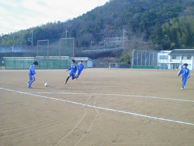 後半に入ると、相手がAチームのメンバーを数人出してきて、一気に流れをひっくり返されました(%痛い男%) いきなり速くてうまい選手が入ってきたので守備が対応しきれずに、先に失点しました(%ショボ男%) これで守備が精神的に引いてしまったので逆に相手に自由を与え、立て続けに失点をして0−3になりました。。。でも、悪い面ばかりではなかったと思う。今日は攻撃をメインに見ていたのもあったし、攻撃のほうでそれぞれが必ず一回は『持ち味(武器)』を出してくれたし、勝負の回数も増えた。中盤も一発の長いパスから、近くにつないでという攻撃の意図が随所に見られたので成果は十分にあったと思う。それは子供の表情でも分かるし、終わってから今までは『考える事さえ考えさせられていた』ような感じだったのが、『考える事の意味』を理解しようとしてくれた子が多く、『難しいけど楽しい』と言える子まで増えてきた(%笑う男%)(%星%) 結果は0−3のままでしたが、攻撃の形を作れるようにはなったし、相手にして嫌な選手に変わろうとしている。この変化が成長できっかけになると思う。明後日からは年末大会に入ります!!また同じように成果が少しずつでも出るようにがんばってもらいたいと思います(%笑う男%)