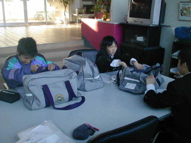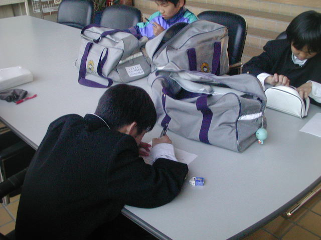 まずは、『カンニング防止』との事でお互いのバッグを壁にしていました(笑)