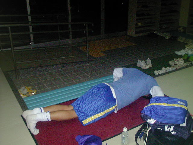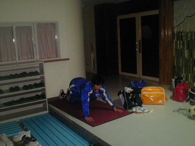 かたや、川口くんと同じメニューをこなし、非常にまいっていたのは健太郎くんでした。元々、持久走も得意なほうではないですがこれからは、そんな苦手だとか言ってられない場所へ行くのでしっかりと今の間に厳しく自分と戦ってほしいと思います。このメニューに付き合った上田 悠平くんも、健太郎くんと同様にダウンしていました・・・・