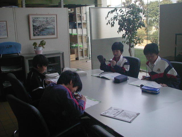 今日は水曜日で中区の勉強会の日でした。昨日のミーティングでも用紙には今日の日は書いていたのですが、ミーティングを慌てて終えたのもあったし、時間を相談するのを忘れたままに解散をしてしまいました(%痛い男%) そこで朝に竹内くんに電話をして今日の時間を相談し、竹内くんに責任持って残りの3人にも連絡を回してもらうように約束をして、午後1時からやりました。