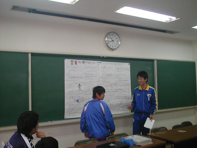 を発表してもらいました。しっかりと考えてやる事を全員がしないといけない事などを説明してくれました(%笑う男%)