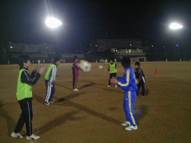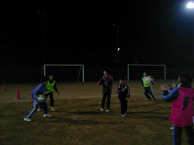 基礎組の隣では4対4のゲームでした。こちらは、競争意識がとても出てきている雰囲気でした。活気のある声や雰囲気が離れていても伝わってきました(%ショック男%) 今日は練習後にコーチ4人で今日の反省点などを話しました。誰ががんばっていたとか、誰が悩んでいるとか、その日の事を確認し合いました。これによって明日見る目も変わってきます。どういう所に意識しようか、などきちんとすぐに確認し合えたのは良かったと思う。明日はまた合同でやりますが、お互いに今週やってきた事を出せるようにしてほしいと思います(%笑う男%)