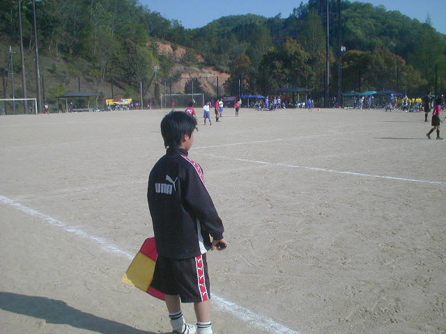 今日は、砂埃もひどくて大変でしたが、ある審判の方に『この生徒達、礼儀がいいですね』(%笑う男%) とお誉めの言葉までいただきました。行動が幼い事もありますが、人の迷惑をかけない事や、こうした活動を嫌な顔せずにやってくれるファルコの生徒には自分が誇りを持っています!!自分の審判責任にプラスして気配り的な事も自然と身に付いてきます。ラインが消えてるな〜とか、次のコートは誰が審判?準備してる?とか、頼りないから自分が後ろに付いてサポートしたるわ、など、気配りが出来る事も本当に大切です!こういう大会を運営するとなると、そういう気配りがたくさんの人によってされているからこそ、スムーズに進むものです。大きな事故もケガもなく初日を終えられたのはうれしい事です(%笑う男%)