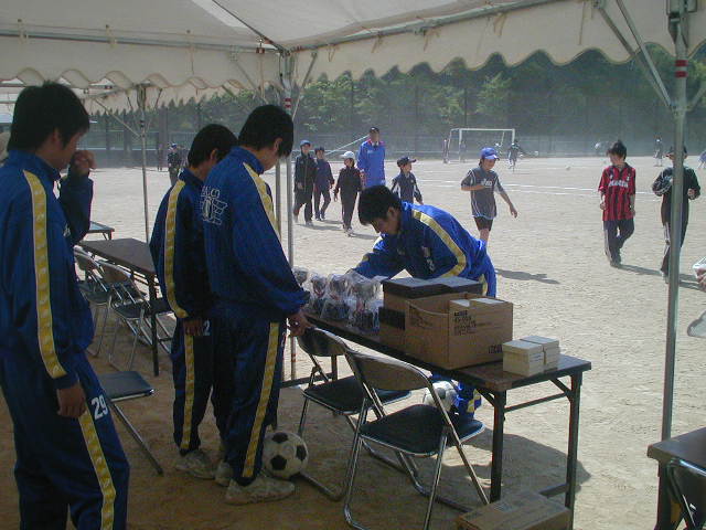 今日は審判練習を兼ねた協力の二日目でした。今日も朝から晴天に迎えられて、サッカーをしている選手、応援される保護者の方々、指導されるコーチの方々には『いい天気』というよりも『暑すぎる』ぐらいでした(%痛い男%)(%晴れ%) それでも、雨よりもずっと良かったと思います。選手のみんなもしっかりと審判が出来るようになってほしいと思います。朝はコーチはみんなよりも早い集合をして、大会の準備をしました。みんなが来るのを待っていました(%笑う男%) 昨日の一日で真っ黒になった子もいました。園崎くんは昨日の日差しに少し体調を悪くしたのもあって、今日は心配していましたが元気に来てくれたので安心しました(%笑う男%) が、無理は禁物なのでみんなよりも少なめにやるのと調子が悪かったら早めに言って交代しるようにする事をみんなと本人にも伝えました。