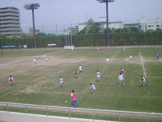 試合は2試合あって、最初の試合は大阪の履正社対高田FC でした。もうこのレベルはプロと同じ45分ハーフでの試合だったので体力的なものも大きな勝負の要素となっていました。試合は局面でお互いに激しく、ファールといいプレーのスレスレのような熱い試合でしたが、高田FCが2−0で勝ちました。このレベルでも関西の2部だというのに驚きの気持ちもありましたが、体はウズウズして早くサッカーをしたくなりました(笑)