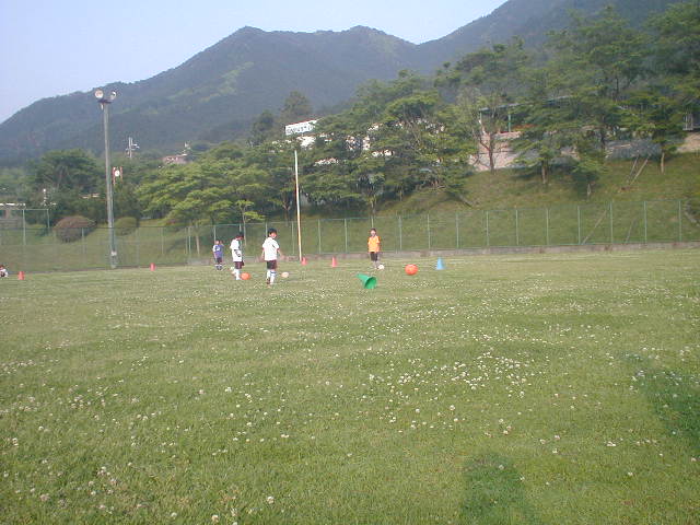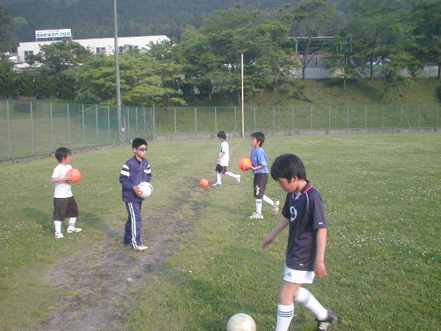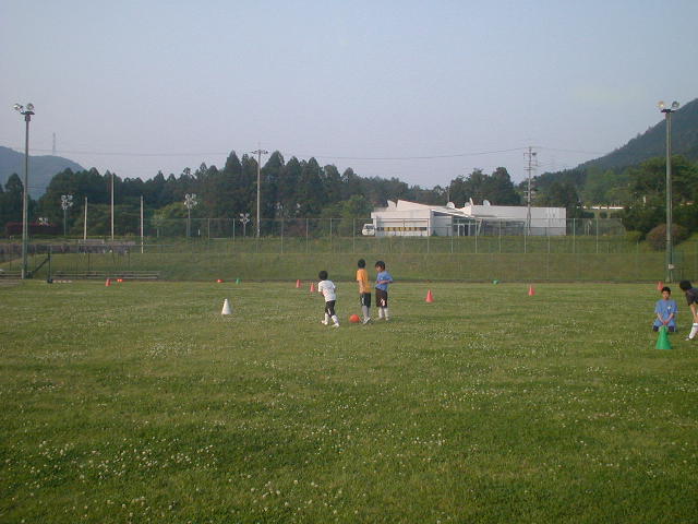 前に進むリフティングは先週の記録を更新すればポイントという事にしています。前回、端っこまで行った一仁くんと寛人くんは、今日は暑さに集中力を発揮出来ずに終わってしまいましたが、また来週こそはがんばりましょう!!太ももだけとヘディングだけもやりました。みんな汗いっぱいかいてがんばってくれました(%笑う男%) フリーではうまくいかなかった一仁くんですが、ヘディングでがんばりを見せ、28mといういい記録を出してくれました(%笑う男%)