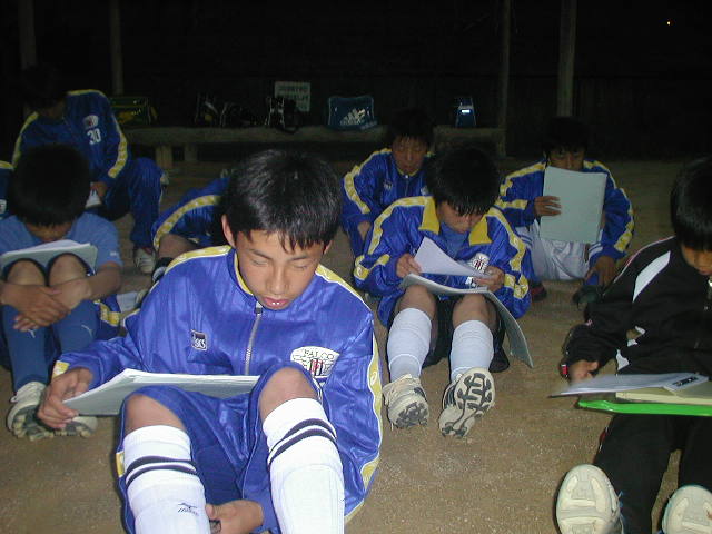 今日は火曜日で最初はミーティングでした。反省と今週のテーマなどを話しましたが、今週は『気を回す』というのをテーマにしました。これは生活面も含めて、自分の責任(校則や家庭でのルールを守る)のは最低限として、それ以上に周りを見て何かをしよう!と言いました。サッカーでは味方がボールを持ったら助けてやれる位置へ動いてフォローをするように、守備ならカバーをしてやるように、という事をテーマにしました。