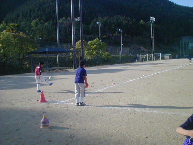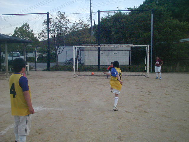 最後はゲームをしました。一つは大きなゴールを置いて、もう一つは小さなコーンでのゴール。得点の取り合いでなかなか面白い展開でした(%笑う男%)