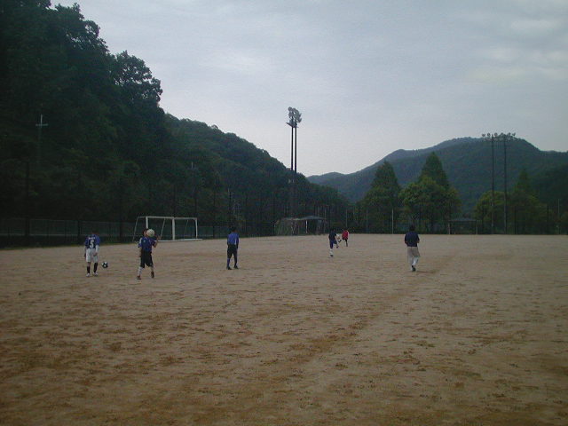 しばらく休んでいると、雨は小降りになったので、ゲームはやろうか!!とやる事にしました。八千代スクールは7名なので4対3のはずですが、写真でゴールの後ろに立っている市位 元気くんがこの雨になる前のドリブルの最中にボールに乗ってしまって足首を捻ってしまいました(%痛い男%) 歩くのも、痛そうだったのですが、やりたい、やりたい!!と気持ちは伝わったのですが、今無理をしたら悪化するしかないので、大事をとって休ませていたのですが、どうにかしてボールを触りたい気持ちがこうして『ボール拾い』となったわけです(%ニコ男%)(%涙%) 痛々しい足を引きずりながらボールを拾ってくれた姿はうれしかったのですが、早く治してもらいたいと思います(%ショボ男%)