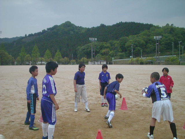 『この子等、ほんまにヘディング苦手???』と思うぐらい当てる精度は抜群です!(笑) こうやって試合でもゴールを狙うのに、誰かを当てる気持ちでやればいいかもですね(%ニヤ男%) 中で逃げる子は、しっかりとボールの流れを見ないといけないので、周りを見る事を覚えてもらえると思います。全員が中に入って楽しくやれました(%笑う男%)
