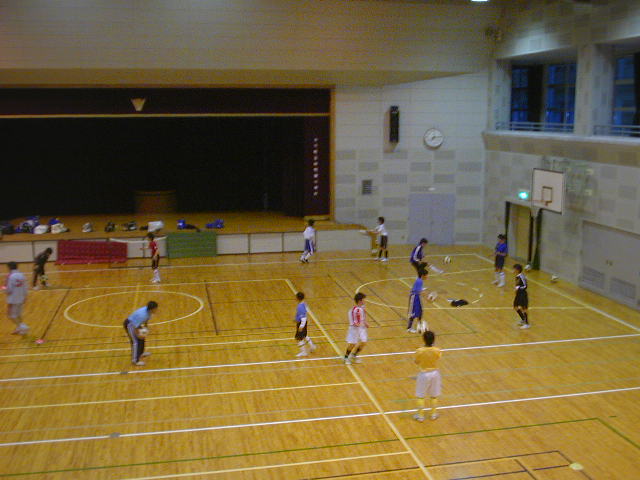 今日は一日よく雨が降りました(%痛い男%)(%雨%) 当然グランドも使える状態ではなく、中区の南小学校の体育館をお借りしての練習となりました。今日は、テストが終わって一旦全員が揃う日でした。来週になるとまた中区のメンバーがテスト休みに入ってまたバラバラになりますが、今日と明日の活動は全員で出来るかと思います。