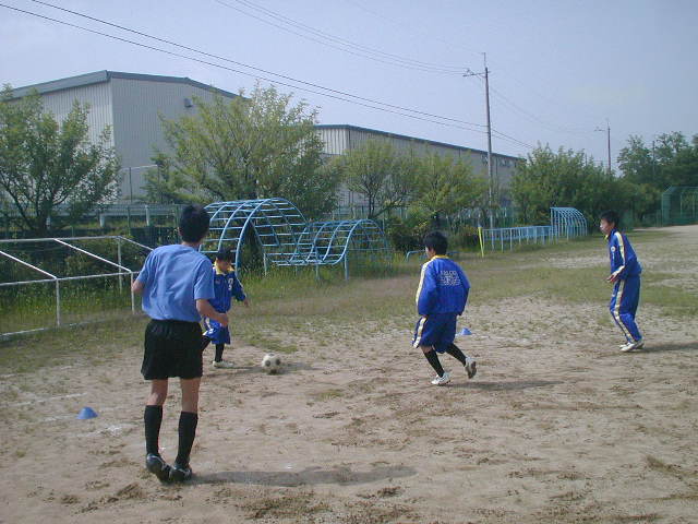 基礎のアップをしてからボール回しをしました。今週やってきた一つの大きなテーマとして『パスコースを作る』事を今日も意識してもらいました。周りの選手がボールを持っている子を助けるように顔出しをしてく事をテーマにしていたのですが、少し時間が経過するとすぐに足が止まってしまって、パスを出して満足してしまう子が非常に多い(%痛い男%) 昨日の練習で言ったけど、動かずにやる3対1は最終的な形であって、今はパスしたらすぐに動いてコースを作ってやる事を意識させています。その一つの事がすぐに忘れてしまうのが悪い癖で、常に意識をしてやれるように頭を動かすようにしてもらいたいと思う。